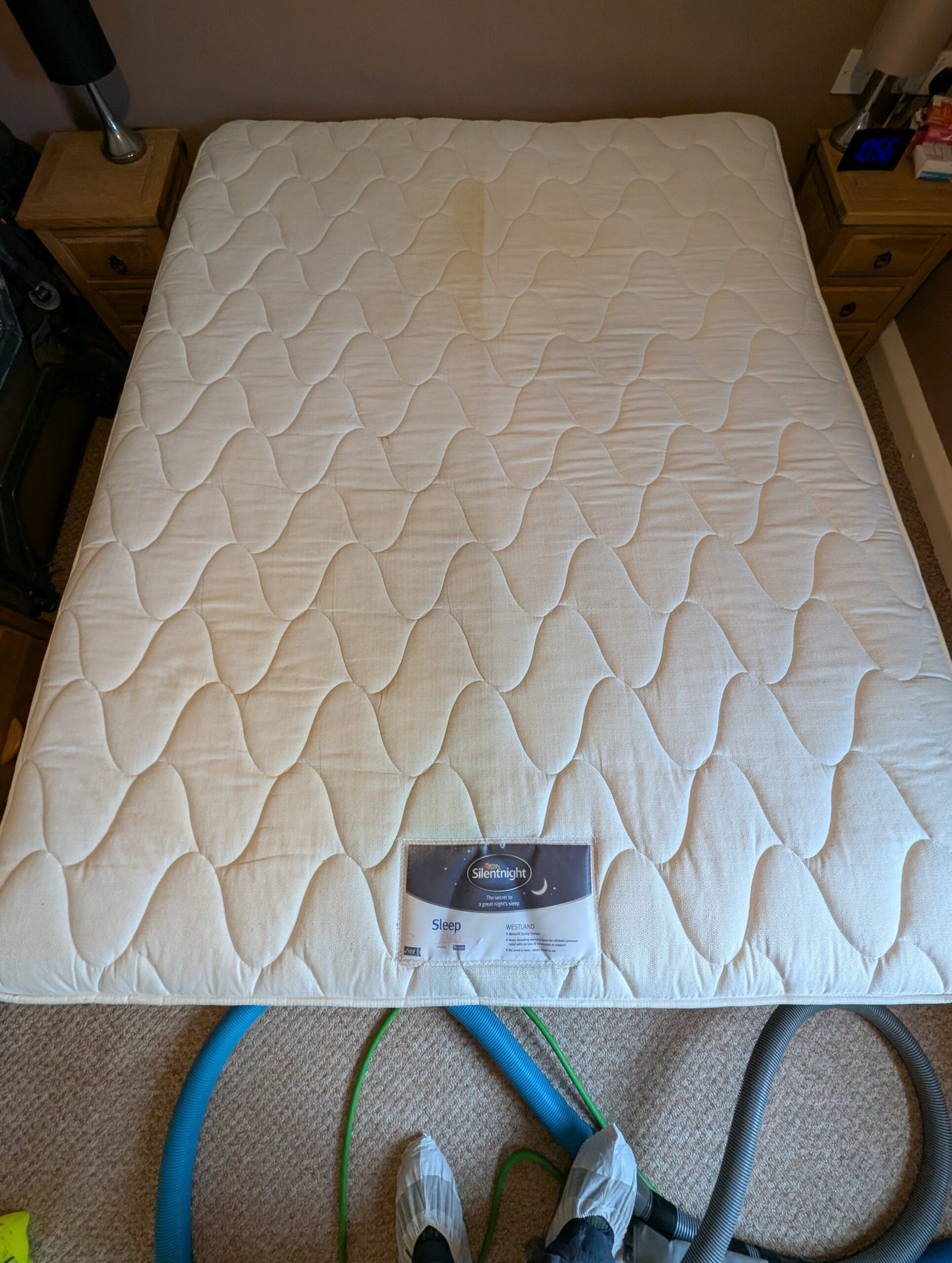 We use a cleaning process called hot water extraction, which gives a deep invigorating clean right into the mattress. The hot water and specialist cleaning agents kill mites and mould, removing soiling and most surface staining, leaving mattresses hygienically clean, fresh and dry within a few hours.We can also apply a post-treatment on request, to help keep those unwanted dust mites away.